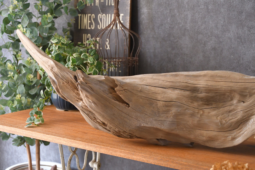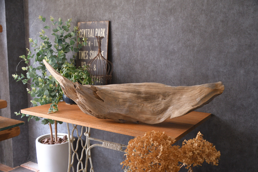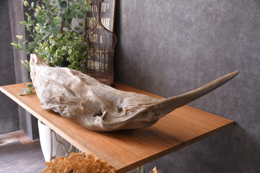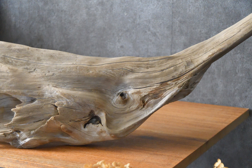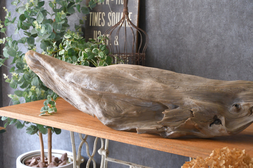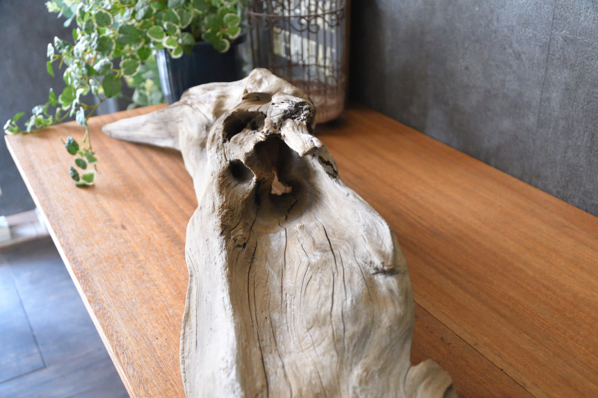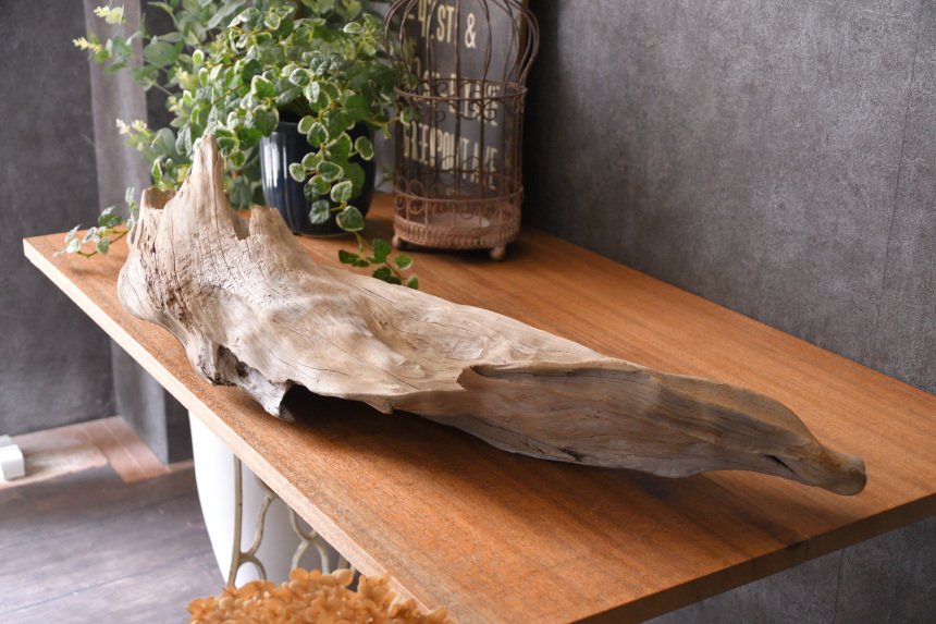 流木は長い年月、海や川の流れにもまれたり強い日差しに照らされたりして風化した自然素材です。