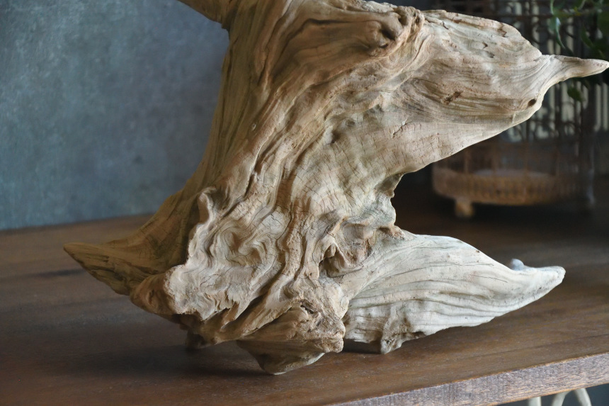 流木は長い年月、海や川の流れにもまれたり強い日差しに照らされたりして風化した自然素材です。
