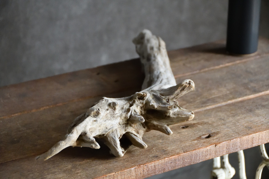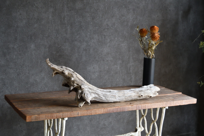 流木は長い年月、海や川の流れにもまれたり強い日差しに照らされたりして風化した自然素材です。