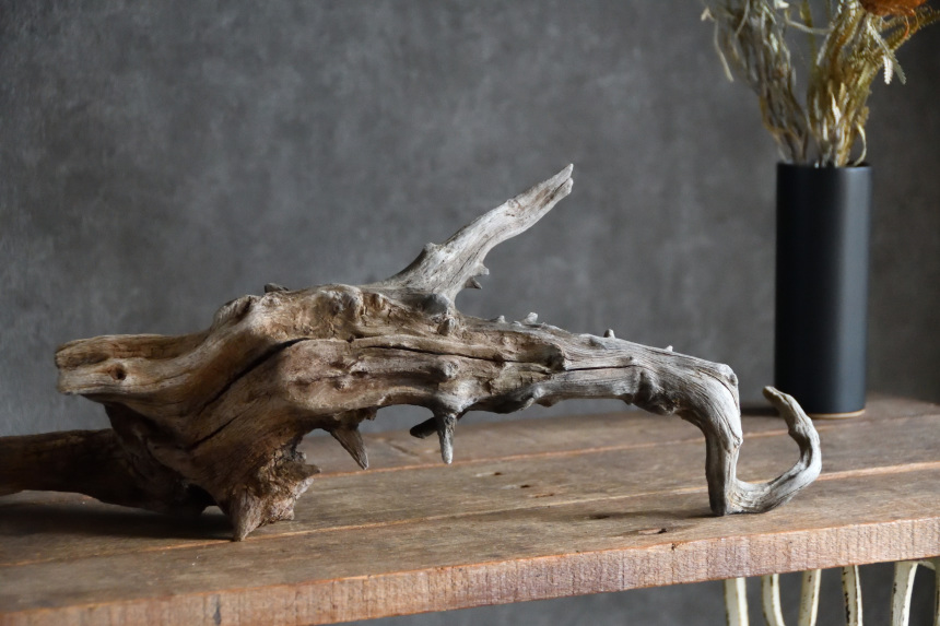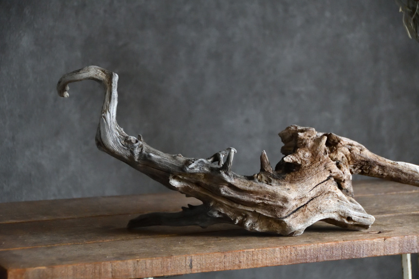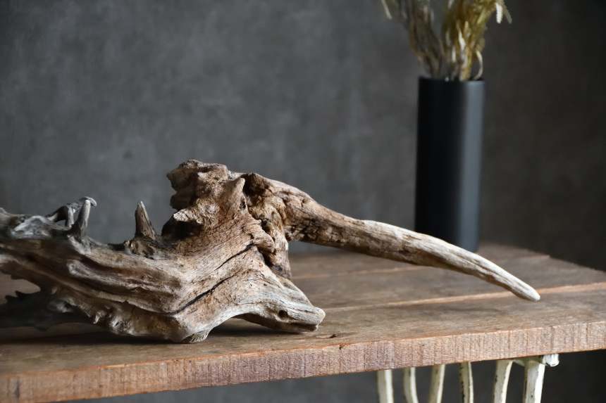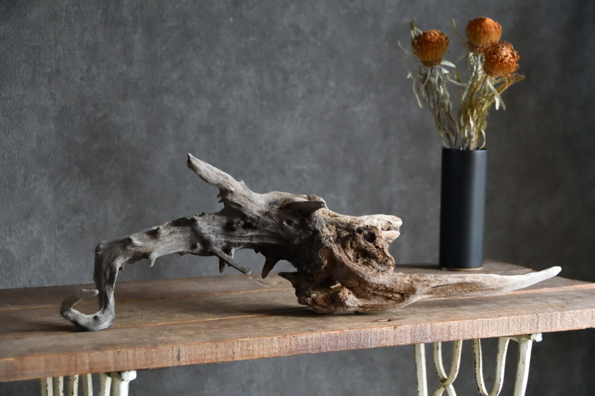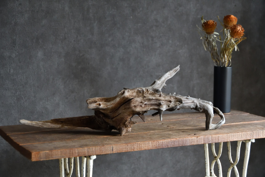 流木は長い年月、海や川の流れにもまれたり強い日差しに照らされたりして風化した自然素材です。