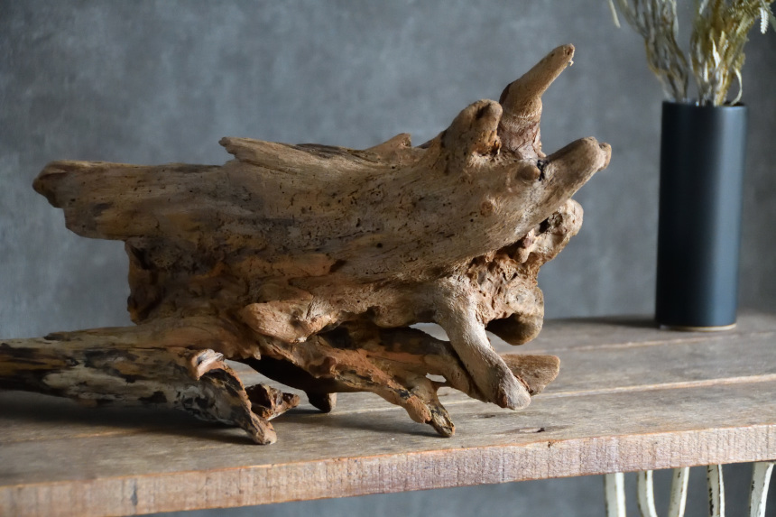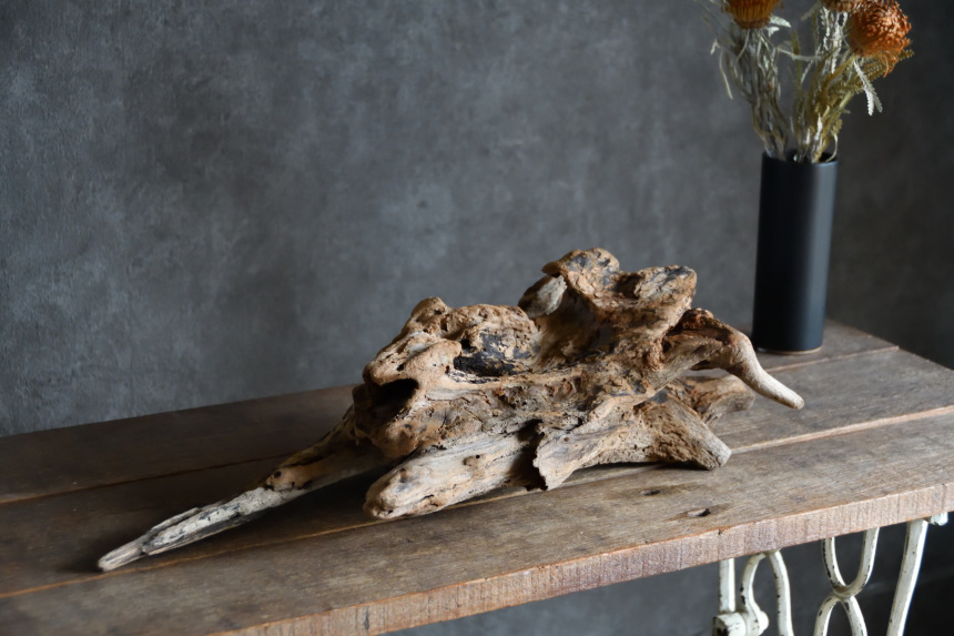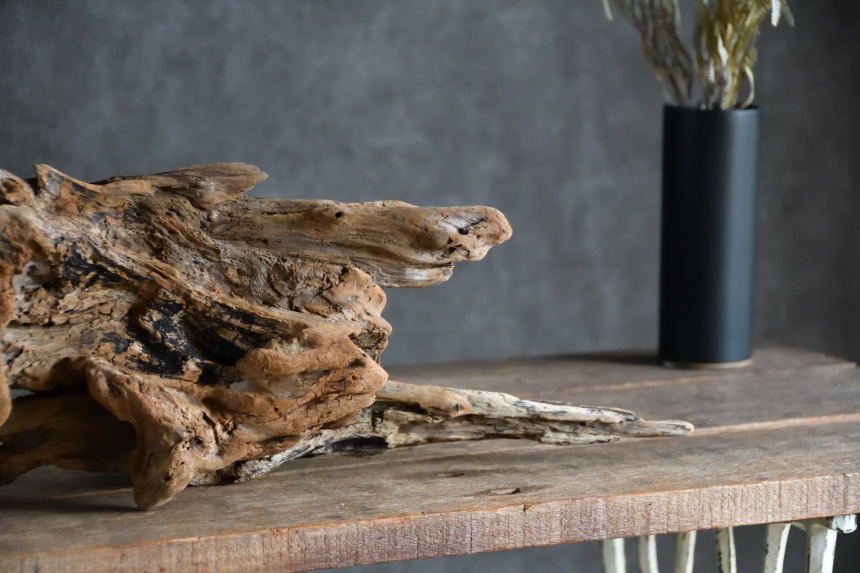 流木は長い年月、海や川の流れにもまれたり強い日差しに照らされたりして風化した自然素材です。