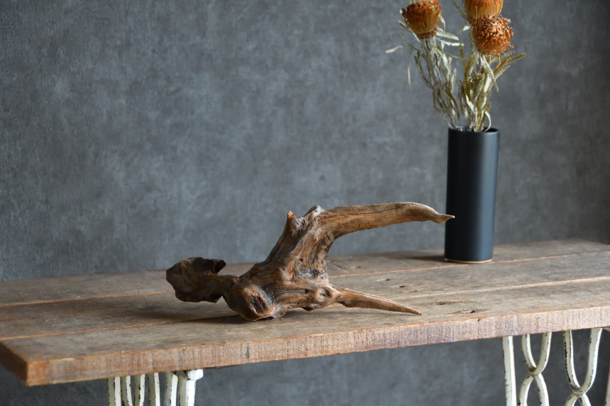 流木は長い年月、海や川の流れにもまれたり強い日差しに照らされたりして風化した自然素材です。