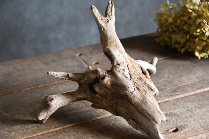流木は長い年月、海や川の流れにもまれたり強い日差しに照らされたりして風化した自然素材です。