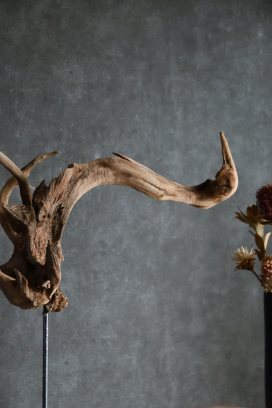 流木は長い年月、海や川の流れにもまれたり強い日差しに照らされたりして風化した自然素材です。