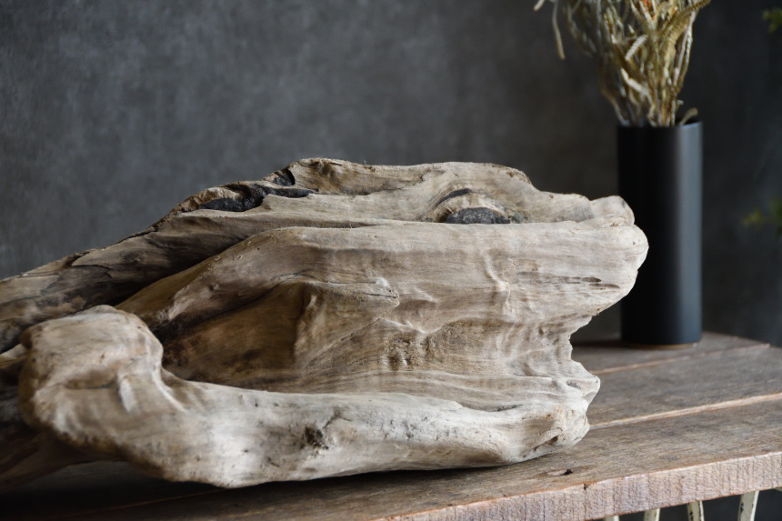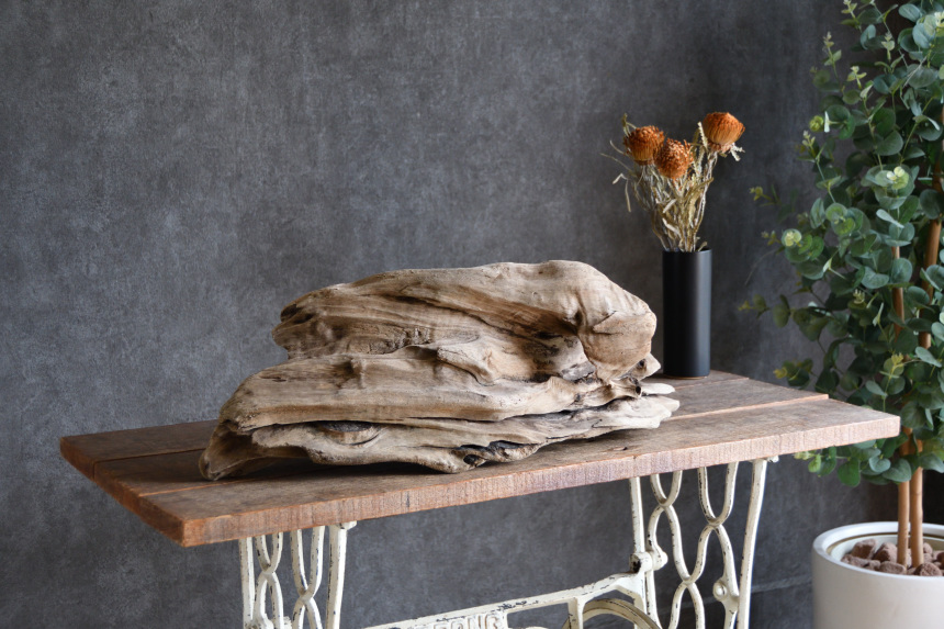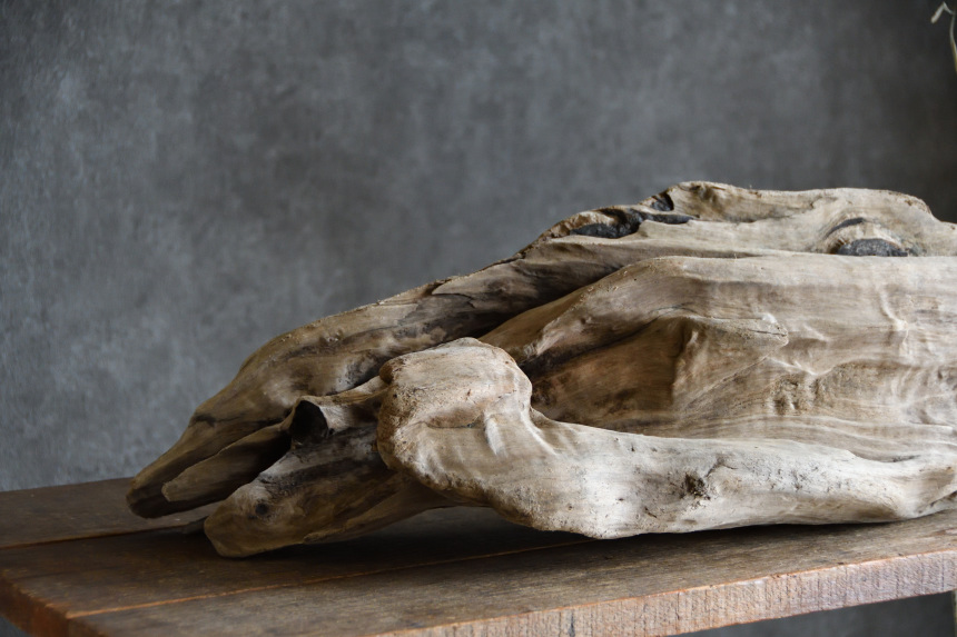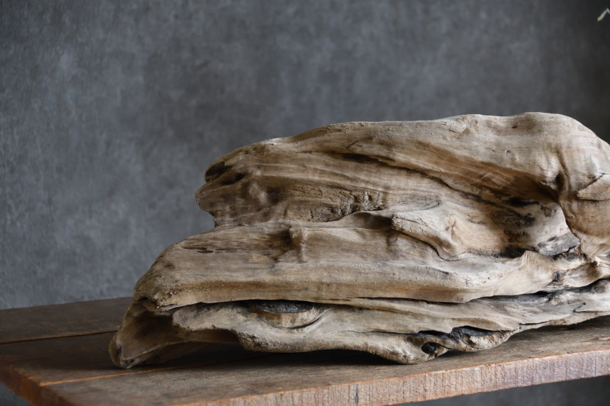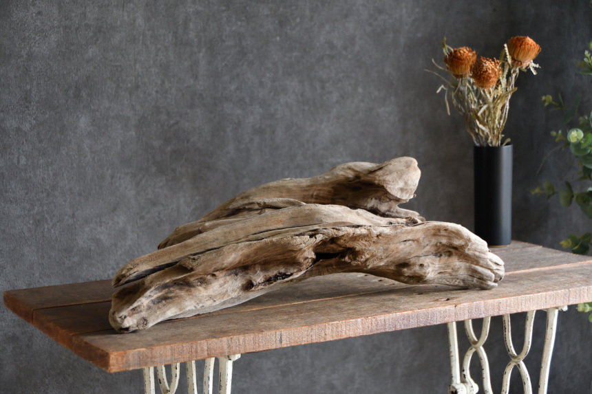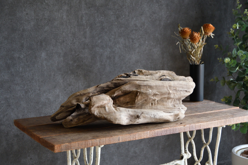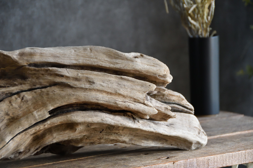 流木は長い年月、海や川の流れにもまれたり強い日差しに照らされたりして風化した自然素材です。