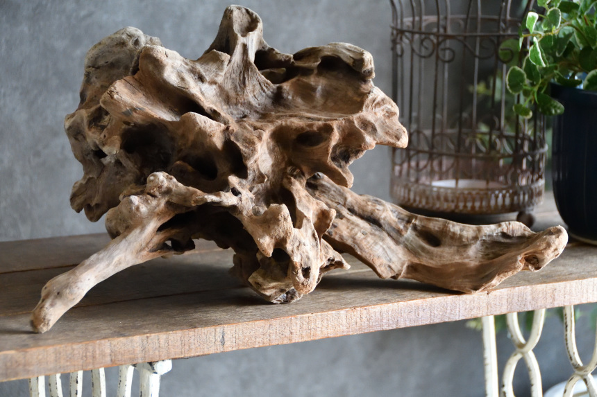 流木は長い年月、海や川の流れにもまれたり強い日差しに照らされたりして風化した自然素材です。