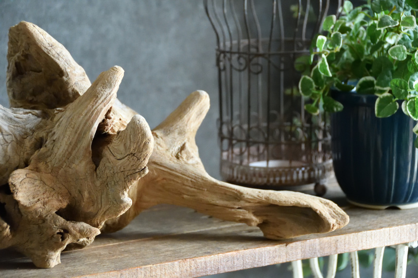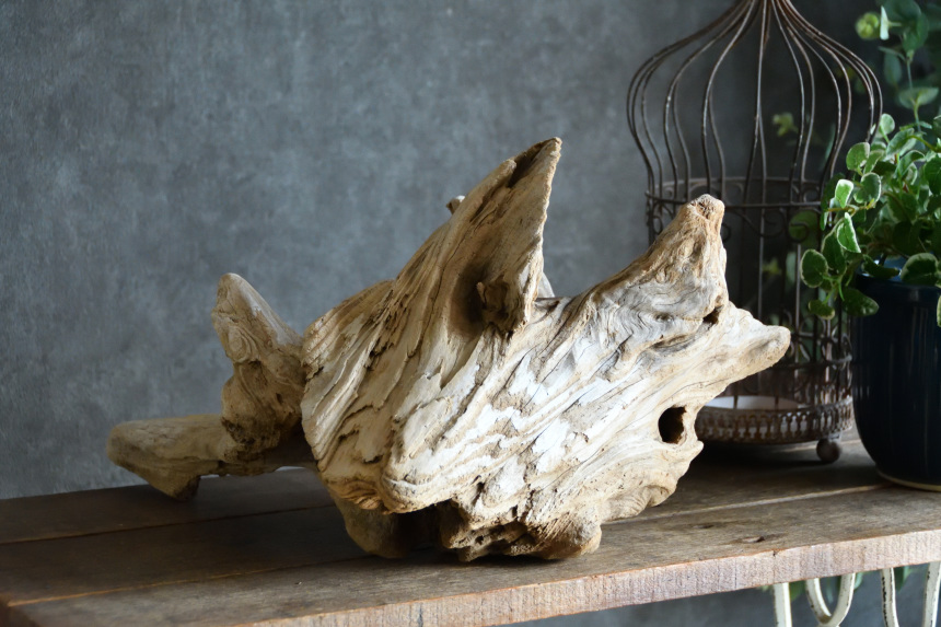 流木は長い年月、海や川の流れにもまれたり強い日差しに照らされたりして風化した自然素材です。