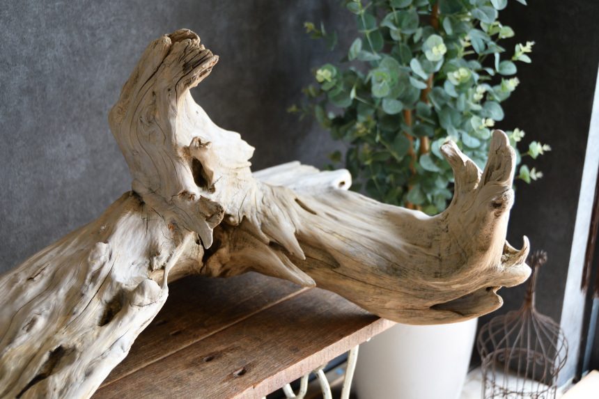流木は長い年月、海や川の流れにもまれたり強い日差しに照らされたりして風化した自然素材です。