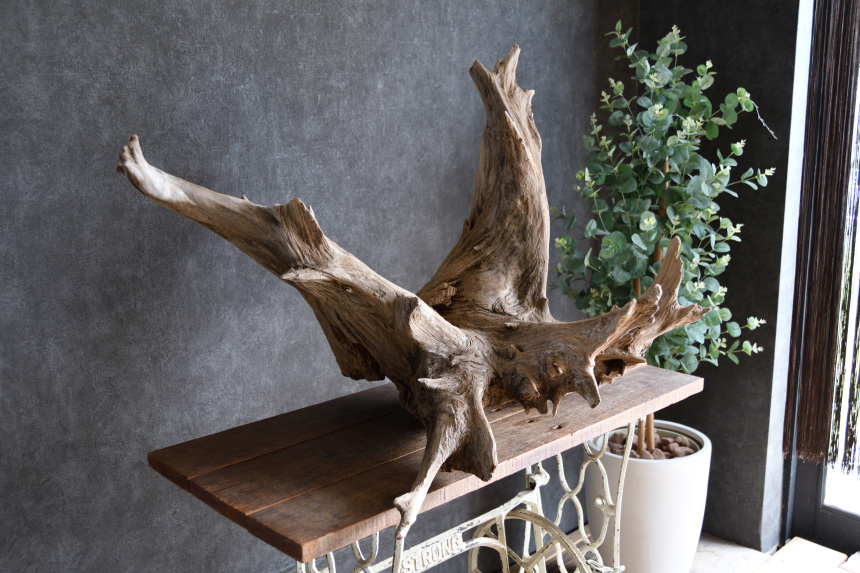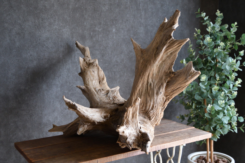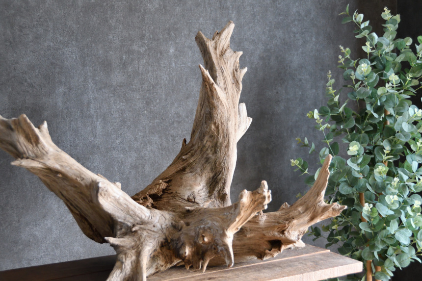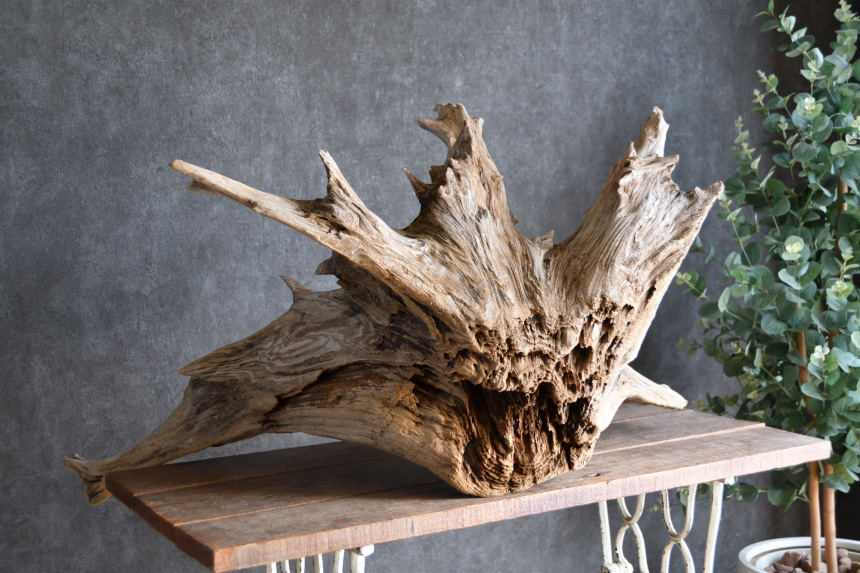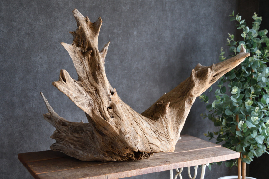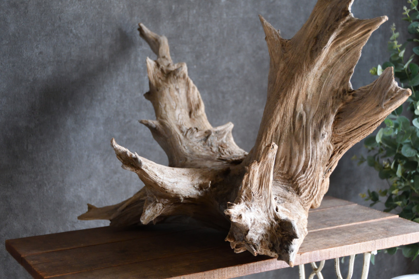 流木は長い年月、海や川の流れにもまれたり強い日差しに照らされたりして風化した自然素材です。